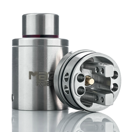Maze V2 RDA features a gold plated squonk pin, a deep juice well and the ability to build single or dual coils.